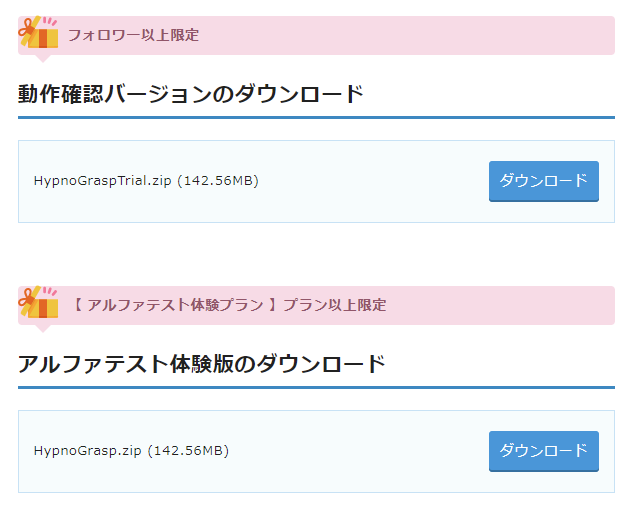 支援完了後、再度公開ページを閲覧すると体験版がダウンロードできる状態となっています。