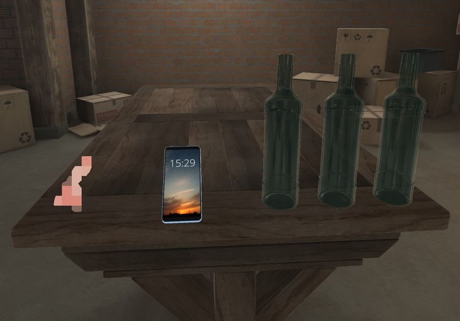 右の机にはディルド、催眠スマホ、瓶が用意されています。